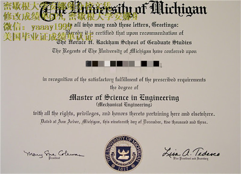 修改成绩单GPA,密歇根大学安娜堡分校毕业证烫金说明