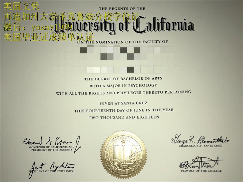 再造加州大学圣克鲁兹分校学位记新版,美国毕业证开模质量杠